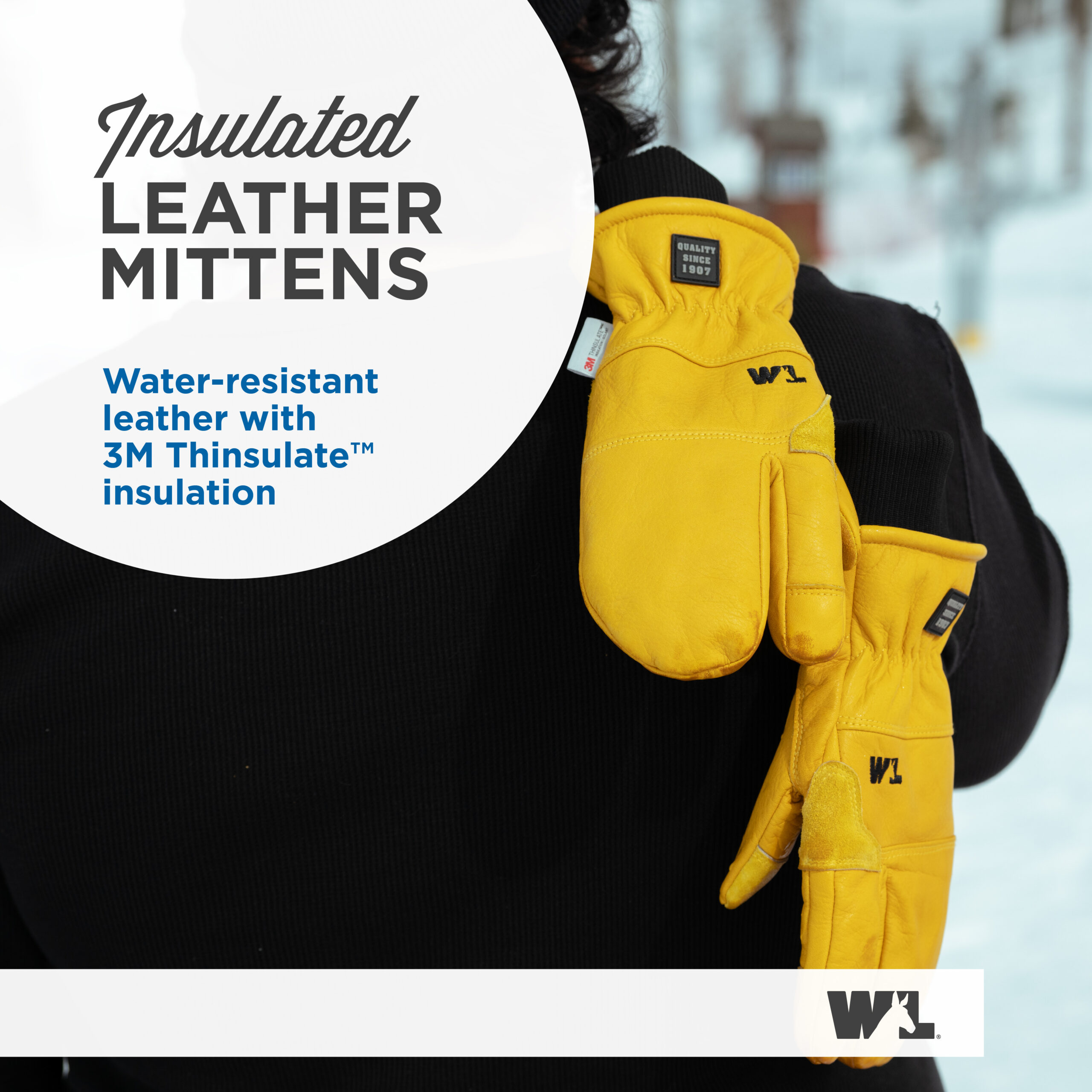 These mittens feature a water-resistant cowhide palm with 3M™ Thinsulate™ insulation, a knit wrist, and a removable ski strap with a carabiner for ultimate durability and comfort.