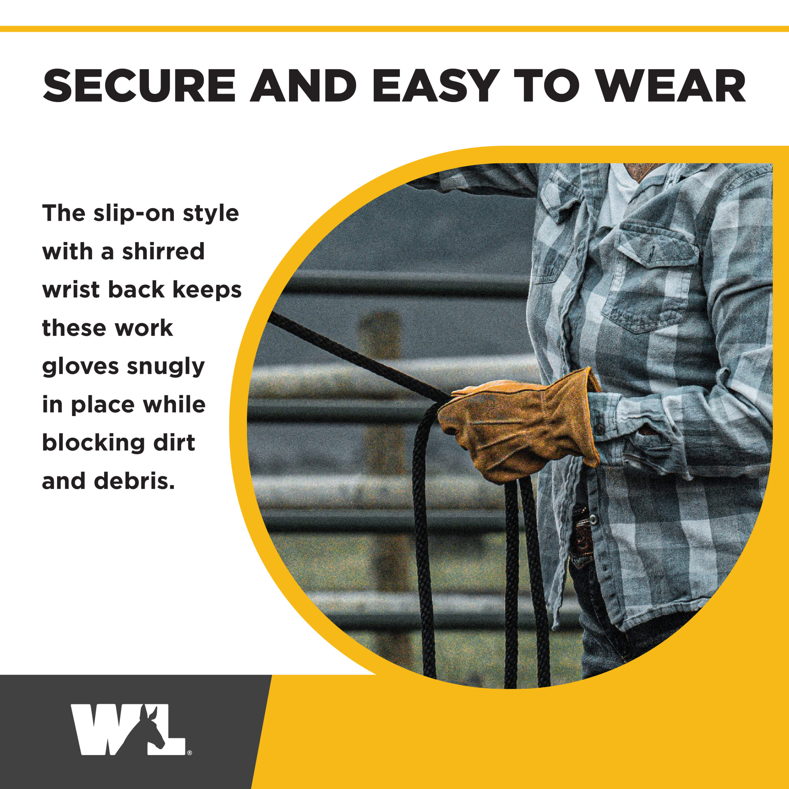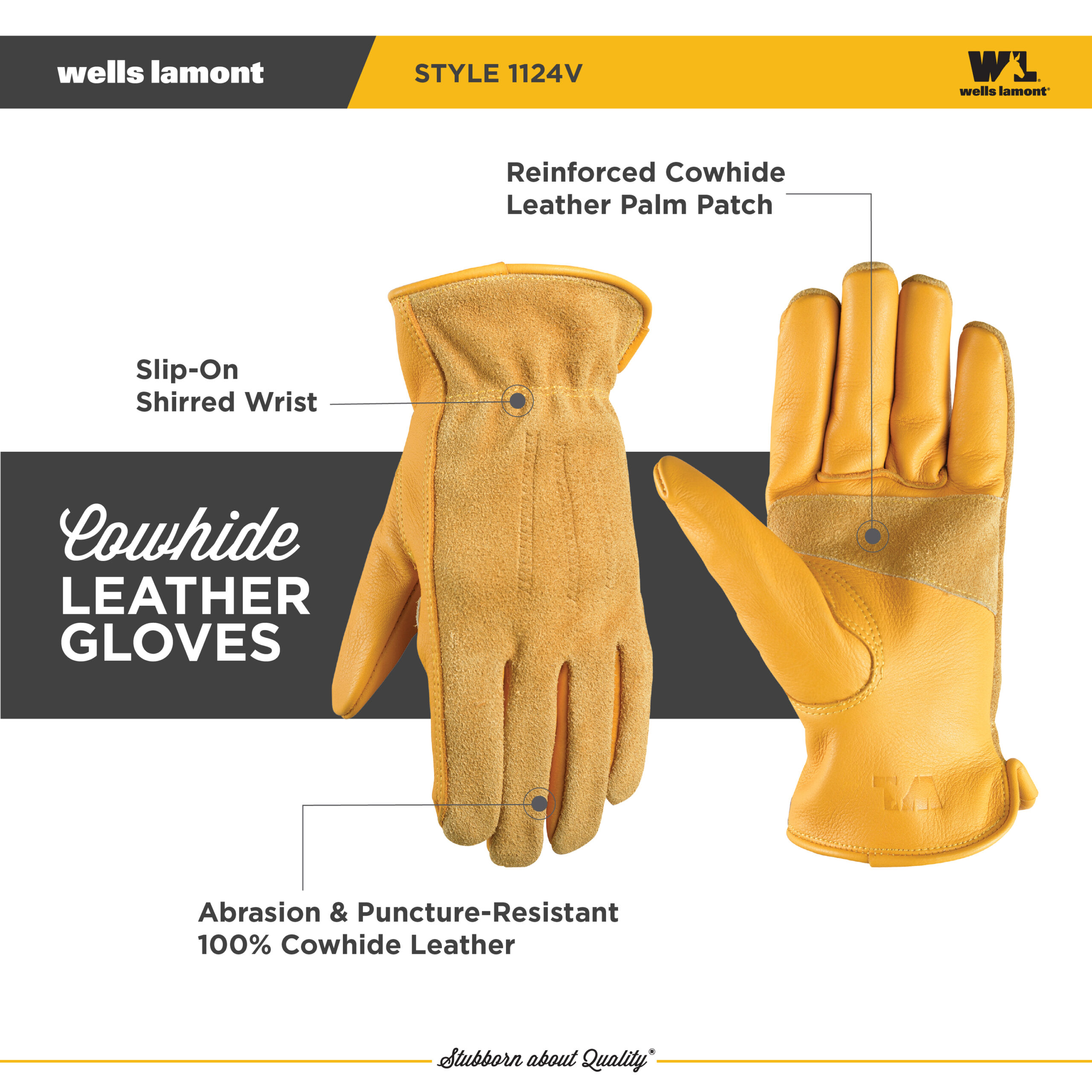 - Tough cowhide leather palm and reinforced palm patch for increased wear, grip, and durability